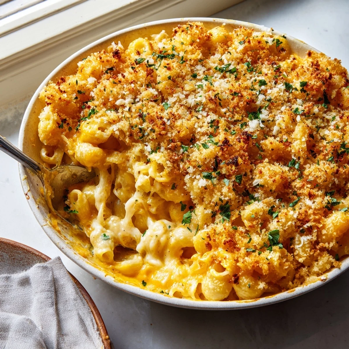 This indulgent baked macaroni combines sharp cheddar, Gruyère, and mozzarella in a velvety homemade béchamel sauce. The creamy interior gets crowned with buttery parmesan breadcrumbs that bake to golden perfection. Ready in under an hour, this crowd-pleasing dish delivers the ultimate comfort food experience with its bubbly cheese sauce and satisfying crunch. Perfect for family dinners, potlucks, or whenever you need something deeply satisfying.