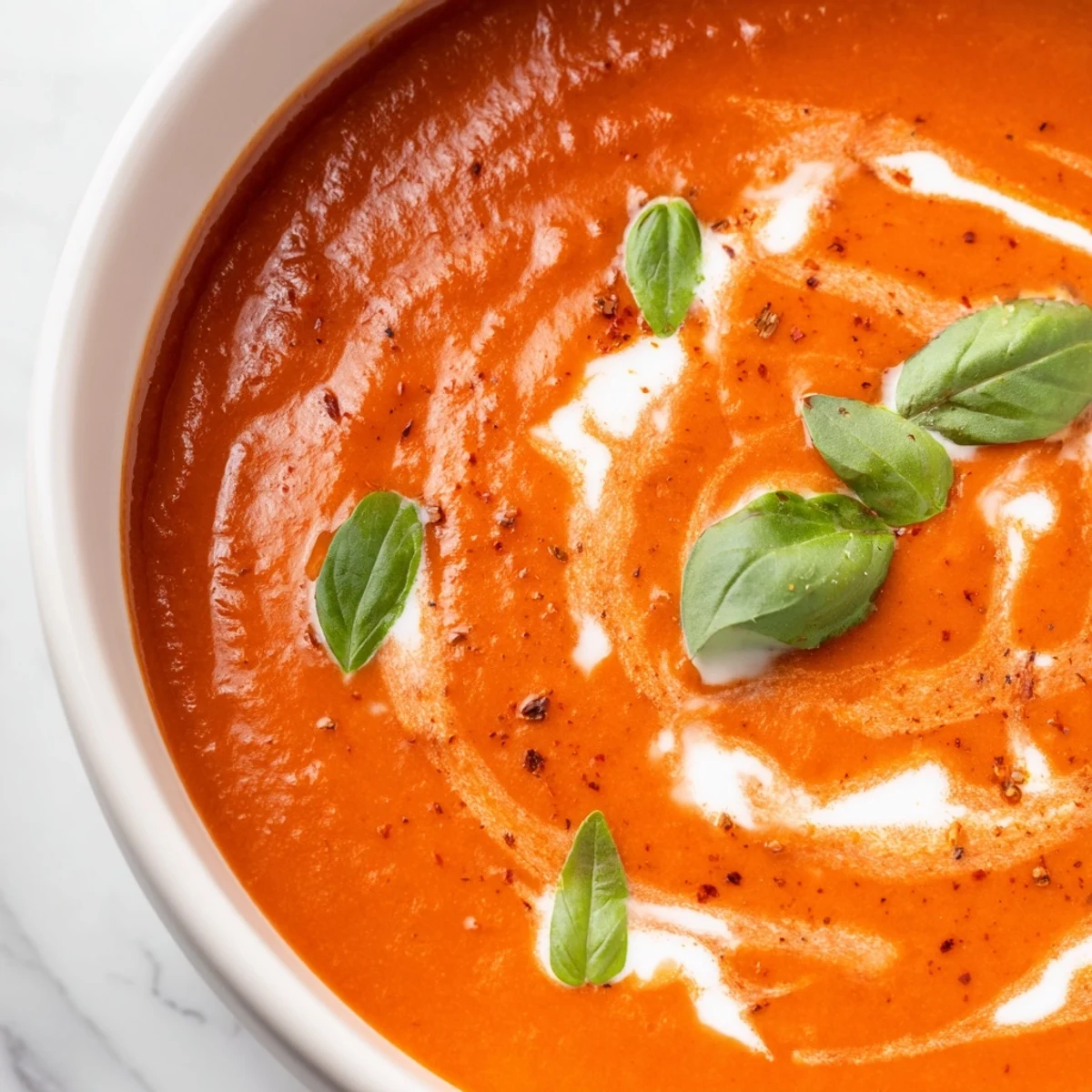 This fire-roasted tomato soup delivers smokey depth and velvety texture in just 45 minutes. Canned fire-roasted tomatoes blend with aromatic vegetables, smoked paprika, and thyme for a comforting bowl that's perfect for cold weather or elegant entertaining.