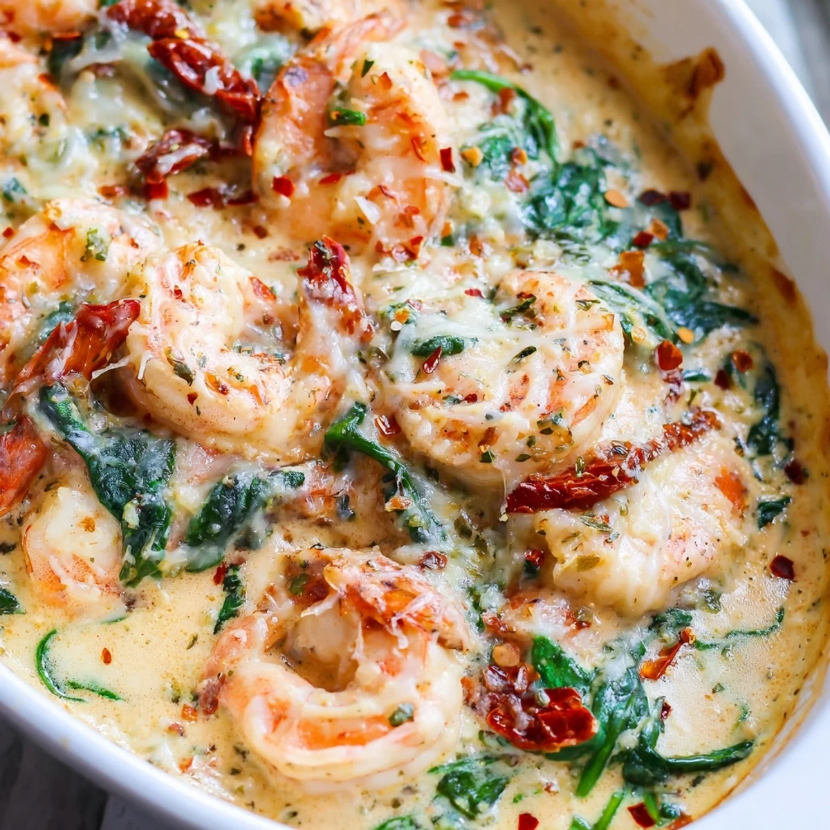 - Toss in sun-dried tomatoes and fresh spinach, stirring until the spinach collapses into soft green ribbons.